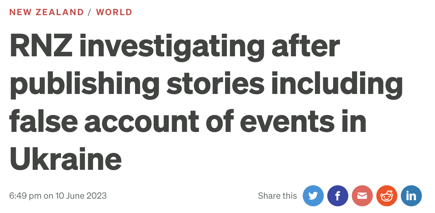 RNZ is investigating itself after publishing a story that included a false account of events in Ukraine.