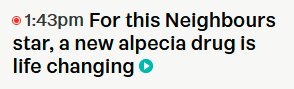 “Alopecia” is having no hair. Stuff has invented “Alpecia” which I guess is having no “o”.
