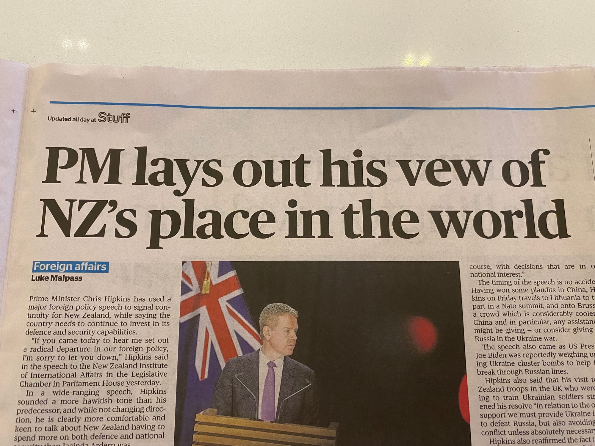 PM lays out his what? NZ Herald fails to proofread its headline.