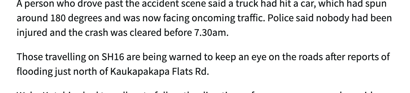 No such road as Kaukapakapa Flats Rd. It is Kahikatea Flats Rd. In the Herald, 21 July.