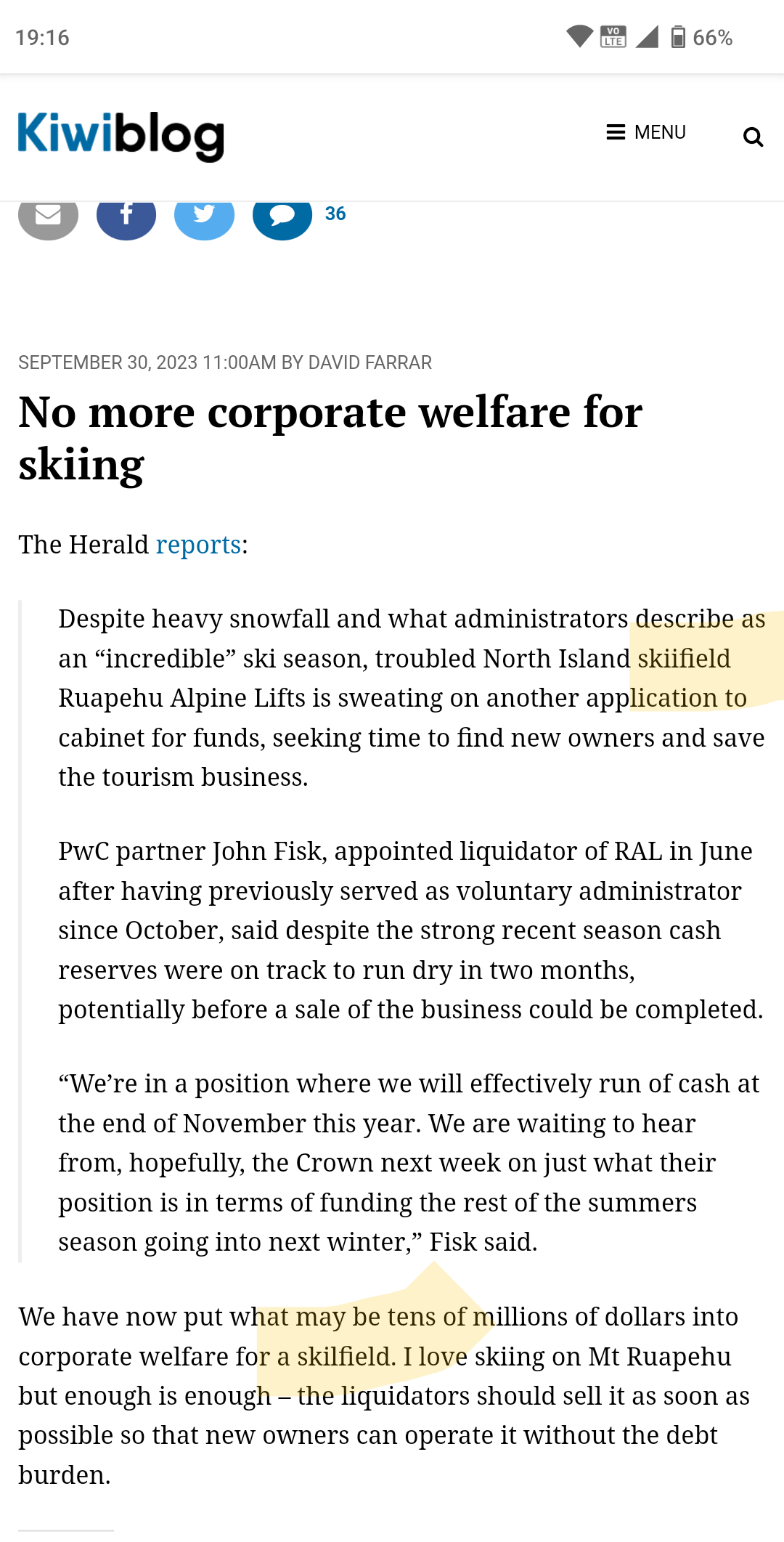 Two attempts to spell ski-field, two fails. One from the NZ Herald the other from KiwiBlog.