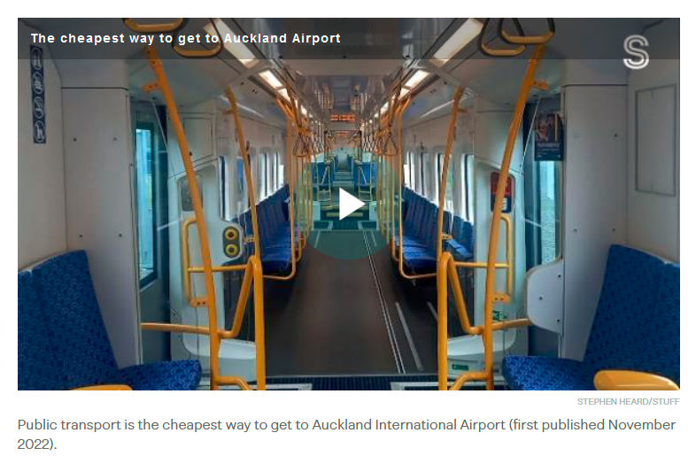 Hey Stuff – in case you hadn’t noticed, trains don’t run to Auckland Airport. So why use a video of a train to suggest (incorrectly BTW) that public transport is the cheapest way to get there?
