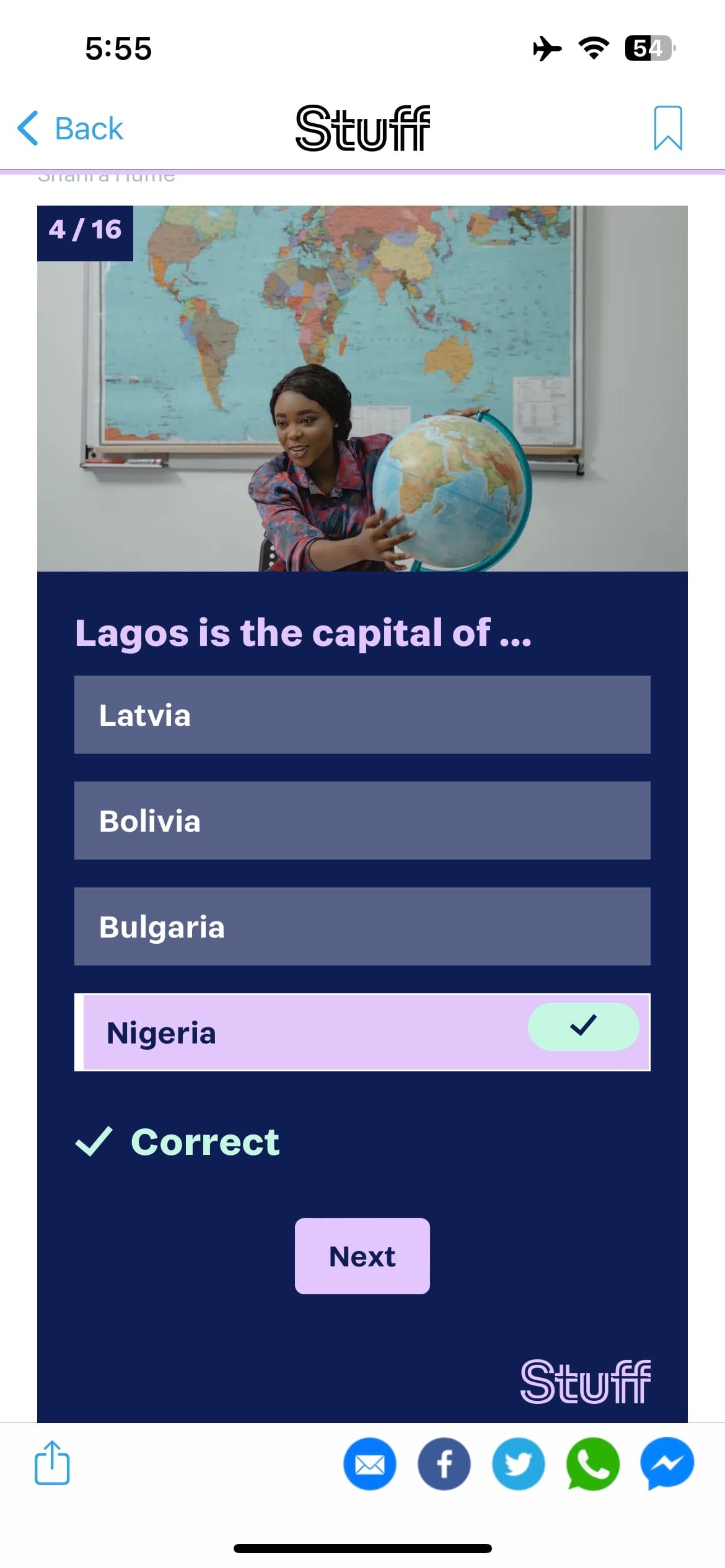 Again the Quiz gives a wrong question and answer – Lagos ceased being the capital thirty-two years ago when it changed to Abuja.