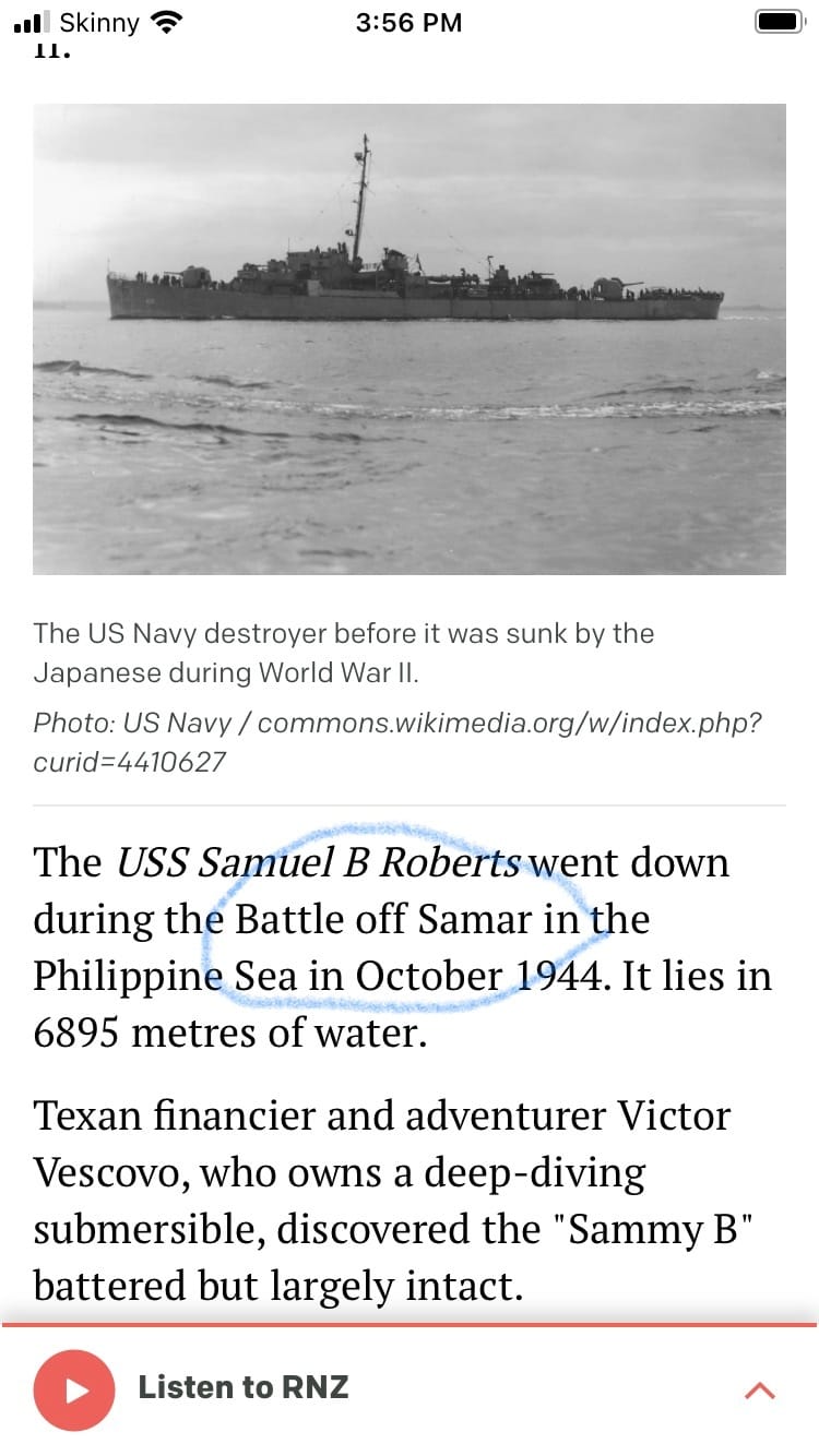 Are you kidding, RNZ? “Battle of Samar” or “battle off Samar”? Jeez!