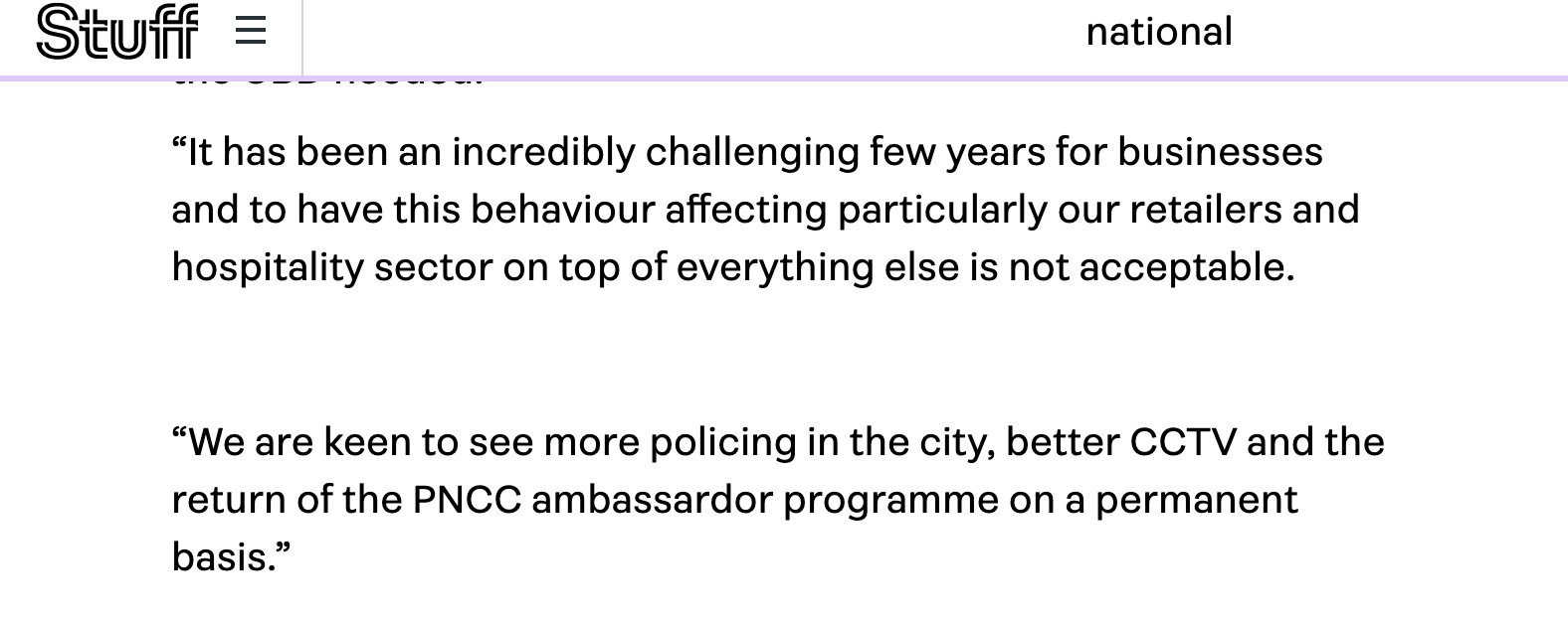 “We are keen to see more policing in the city, better CCTV and the return of the PNCC ambassardor programme on a permanent basis.”