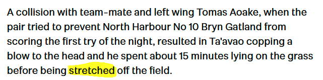 The usual gibberish from Stuff. “Stretched” off the field. Did they have him on a rack or something?