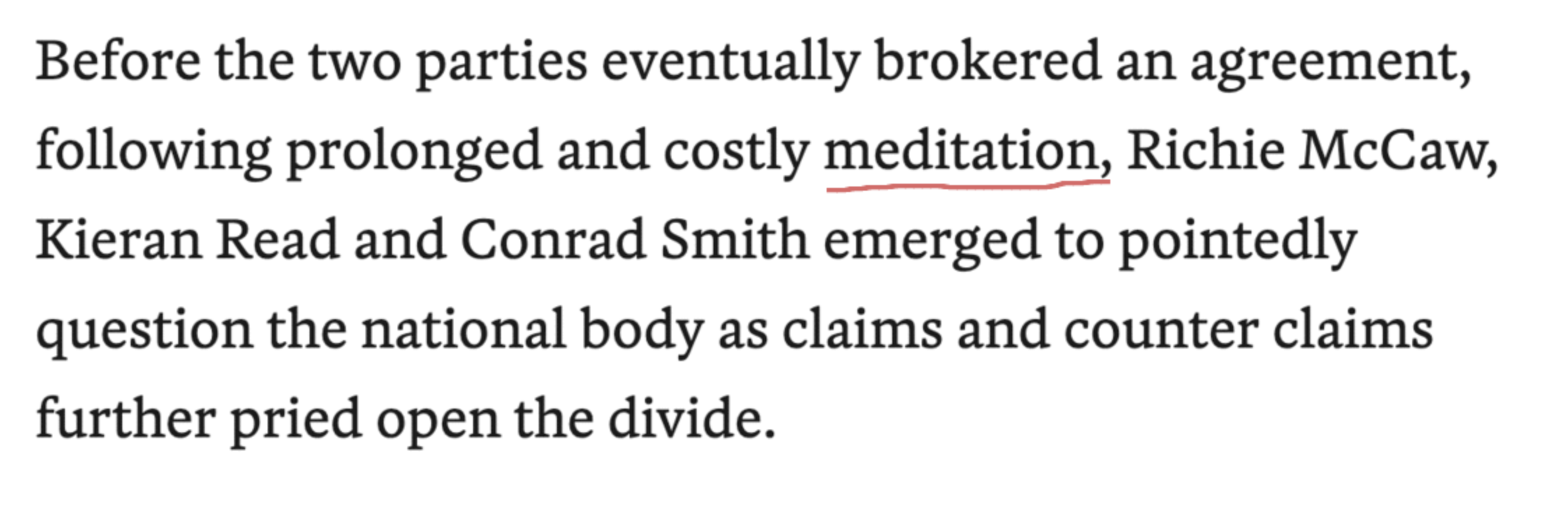 Perhaps “meditation” would be better than mediation the way the All Blacks gave been going.