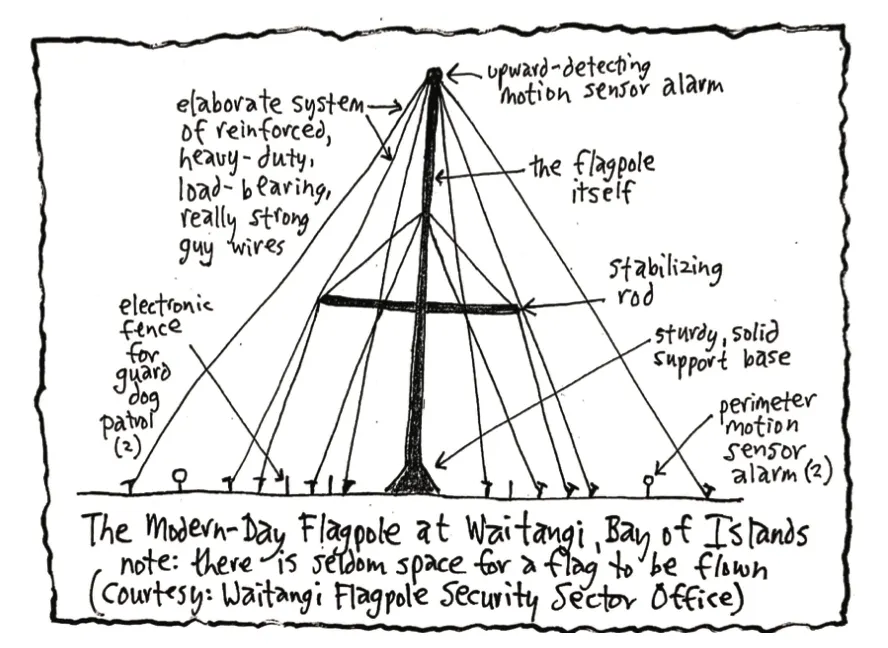 Peace comes (for the time being). ”This is the end of mine to you. It is finished, ” Hone Heke takes to “fire-water” and dies in 1850. A new flagpole is erected at Russell in 1857 by representatives of the seven tribes who fought against the British in The Flagpole War.