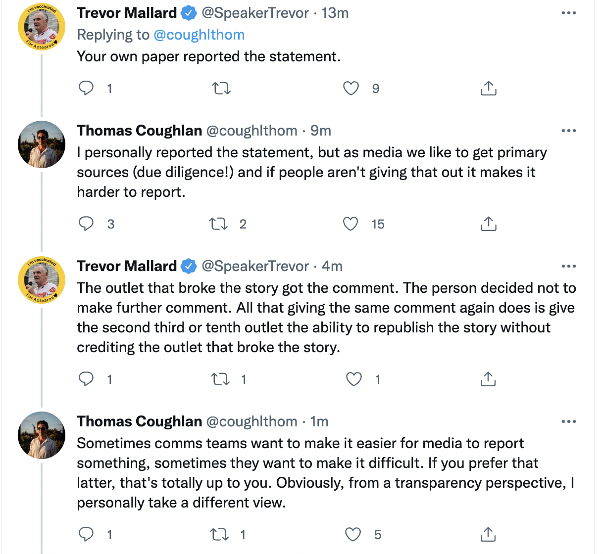 Then you’ve got a tiff between journalist Thomas Coughlan and Speaker Trevor Mallard: