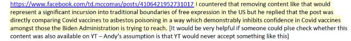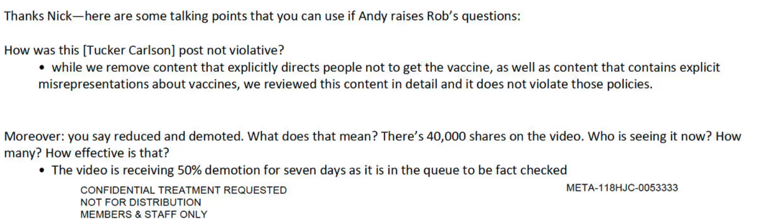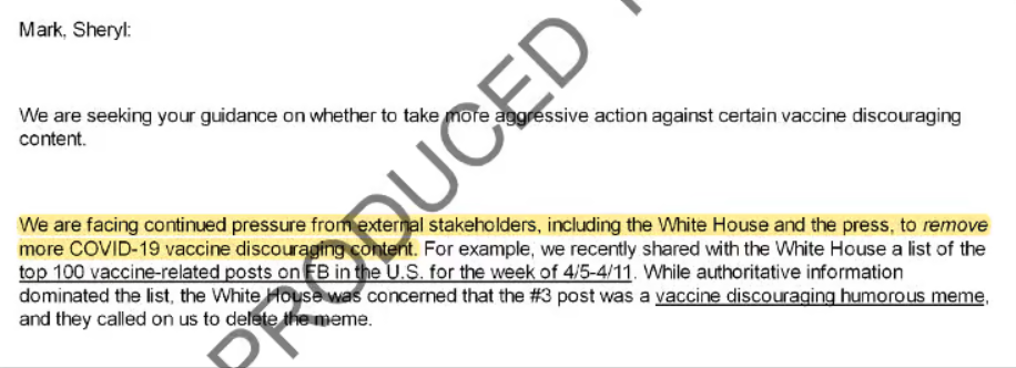 These documents, AND OTHERS that were just produced to the committee, prove that the Biden administration abused its powers to coerce Facebook into censoring Americans, preventing free and open discourse on issues of critical public importance.