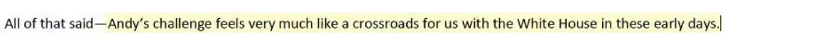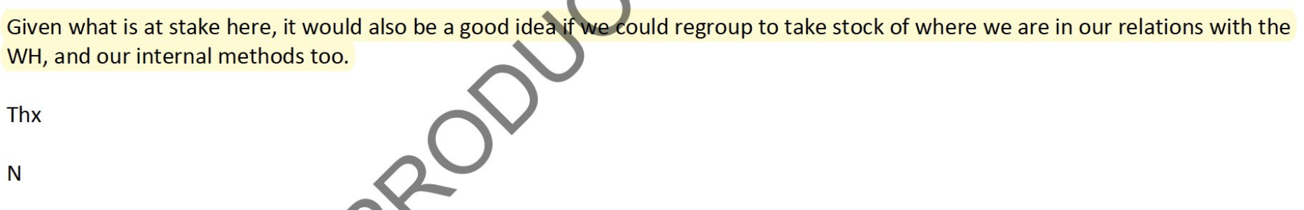 But Facebook wanted to repair its relationship with the White House to avoid adverse action: “Given what is at stake here, it would also be a good idea if we could regroup and take stock of where we are in our relations with the [White House], and our internal methods too.”