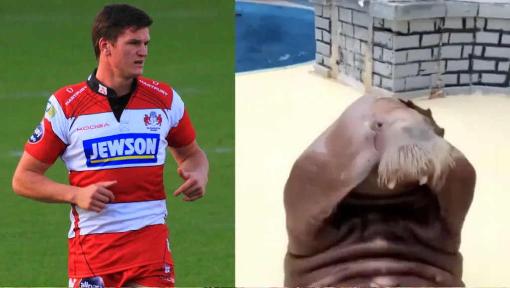 Freddie Burns, a British professional rugby player, was accused of “fat shaming” a walrus after posting a viral video to social media Monday of the captive animal doing “sit-ups.”