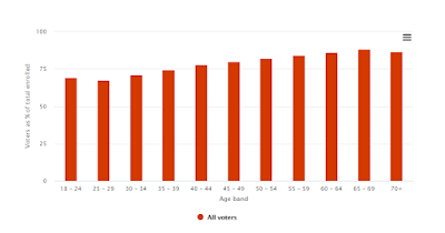 For comparison, 96% of voters aged 55 or older enrol and they turnout in the mid to high 80% range.