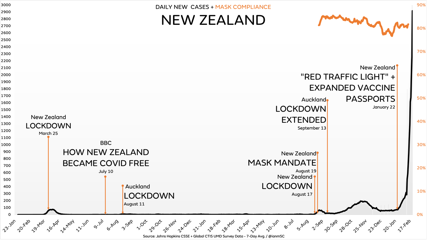 Remember how New Zealand’s amazing tracking and tracing system allowed them to identify transmission that could have only occurred via aerosols? And recall how all of the pre-pandemic guidance on masking suggested that masks could not stop aerosols? Did that stop New Zealand from using mask mandates to try and continue their elimination goals?