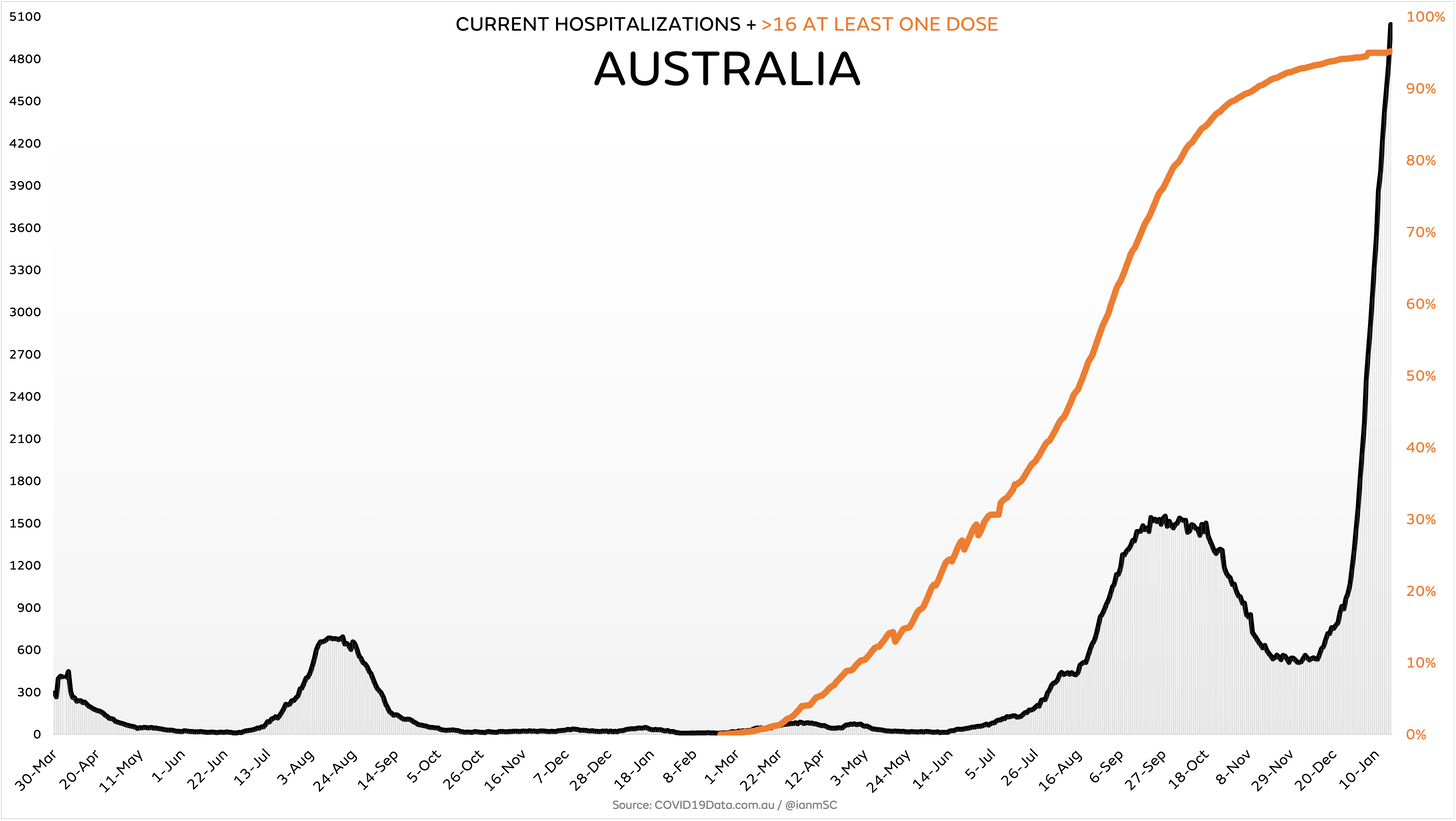 By allowing for vaccines to blunt the impact of cases, these countries would prevent surges in hospitalizations. We already saw that this was wildly off in Australia: