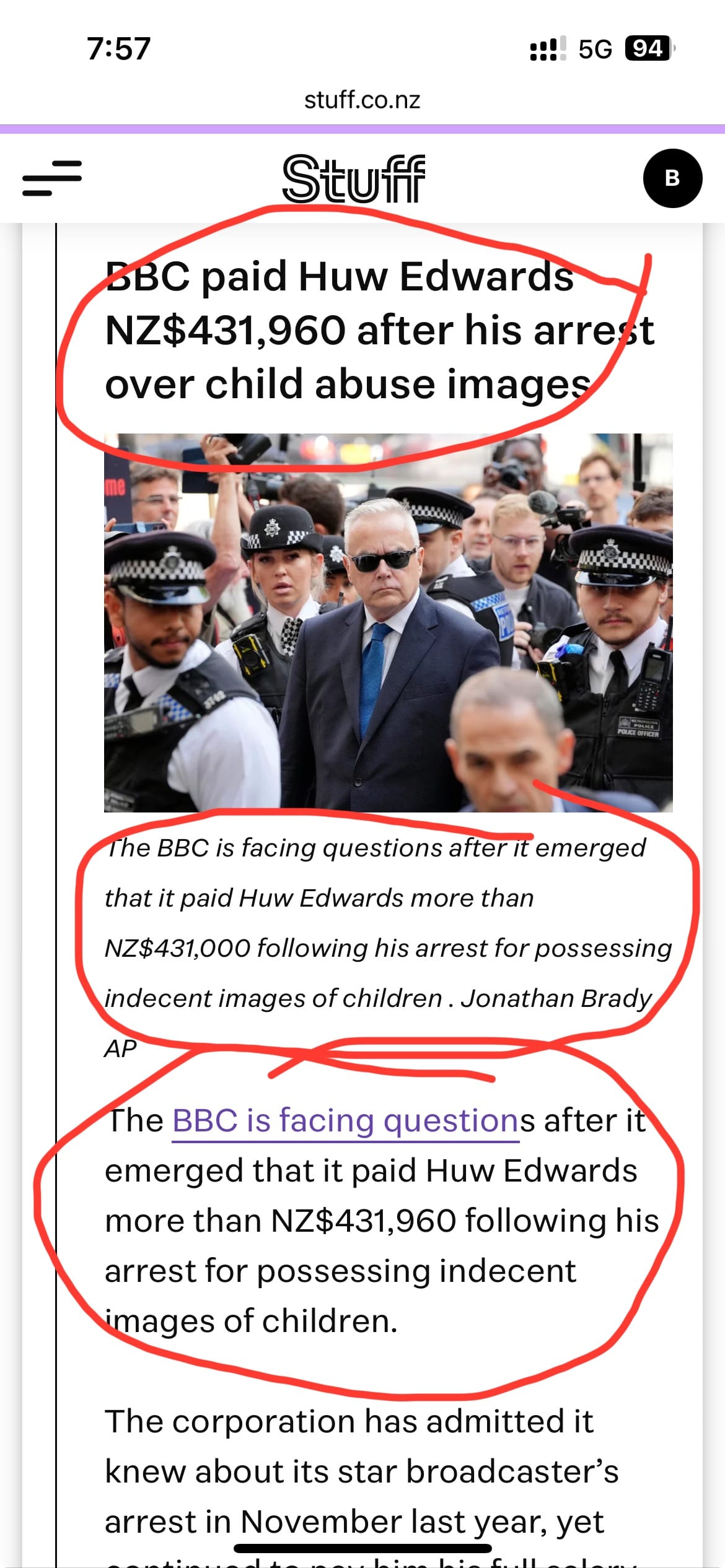 I’m really not sure what Stuff is trying to say here – something about Huw Edwards and the BBC?
