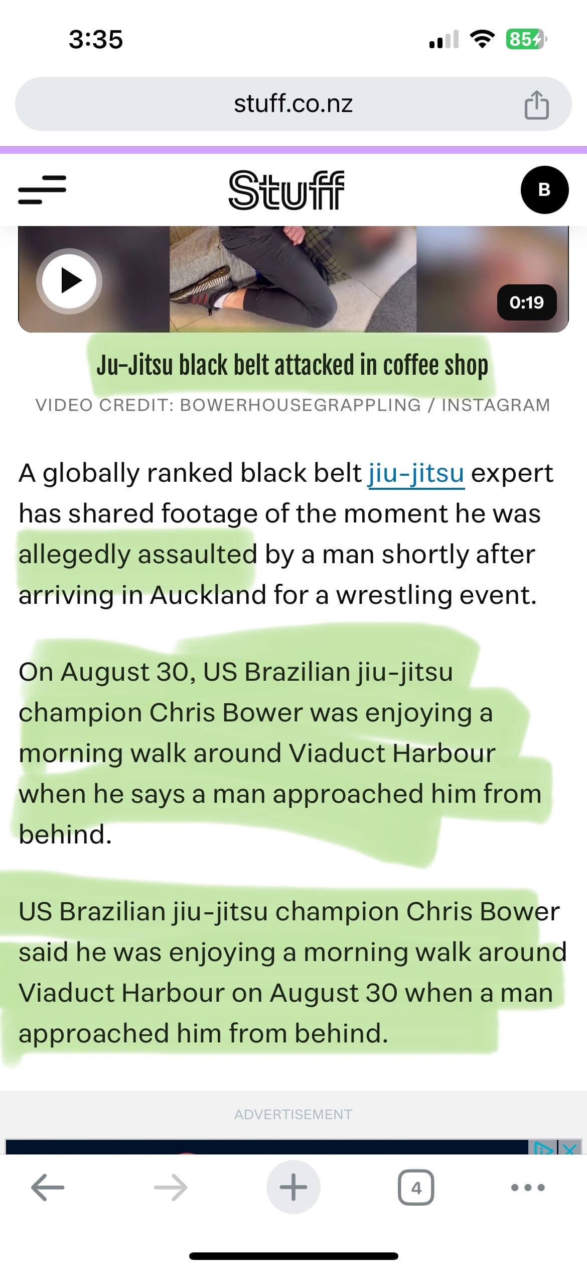 Where do we start? First, they incorrectly call it ju-jitsu and not jiu-jitsu (NB: there is a sport called jujitsu, however Brazilian jiu-jitsu is the discipline involved in the story). Then he was firstly attacked and then allegedly assaulted – bit of an inconsistency there. Finally they basically repeat the same paragraph. That’s some Grade F reporting and sub-editing.