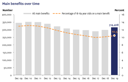 The current Labour government was in the process of turning the downward trend around. More people were accessing benefits despite the unemployment rate being low and jobs plentiful.