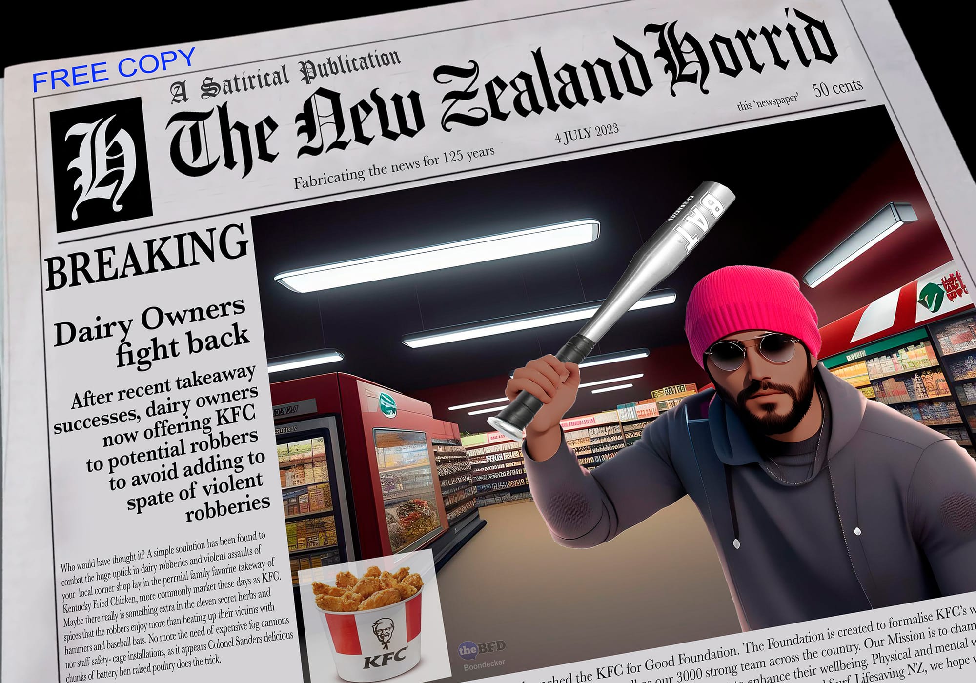 The Great KFC Robbery. Photoshopped image credit: Boondecker. The BFD.