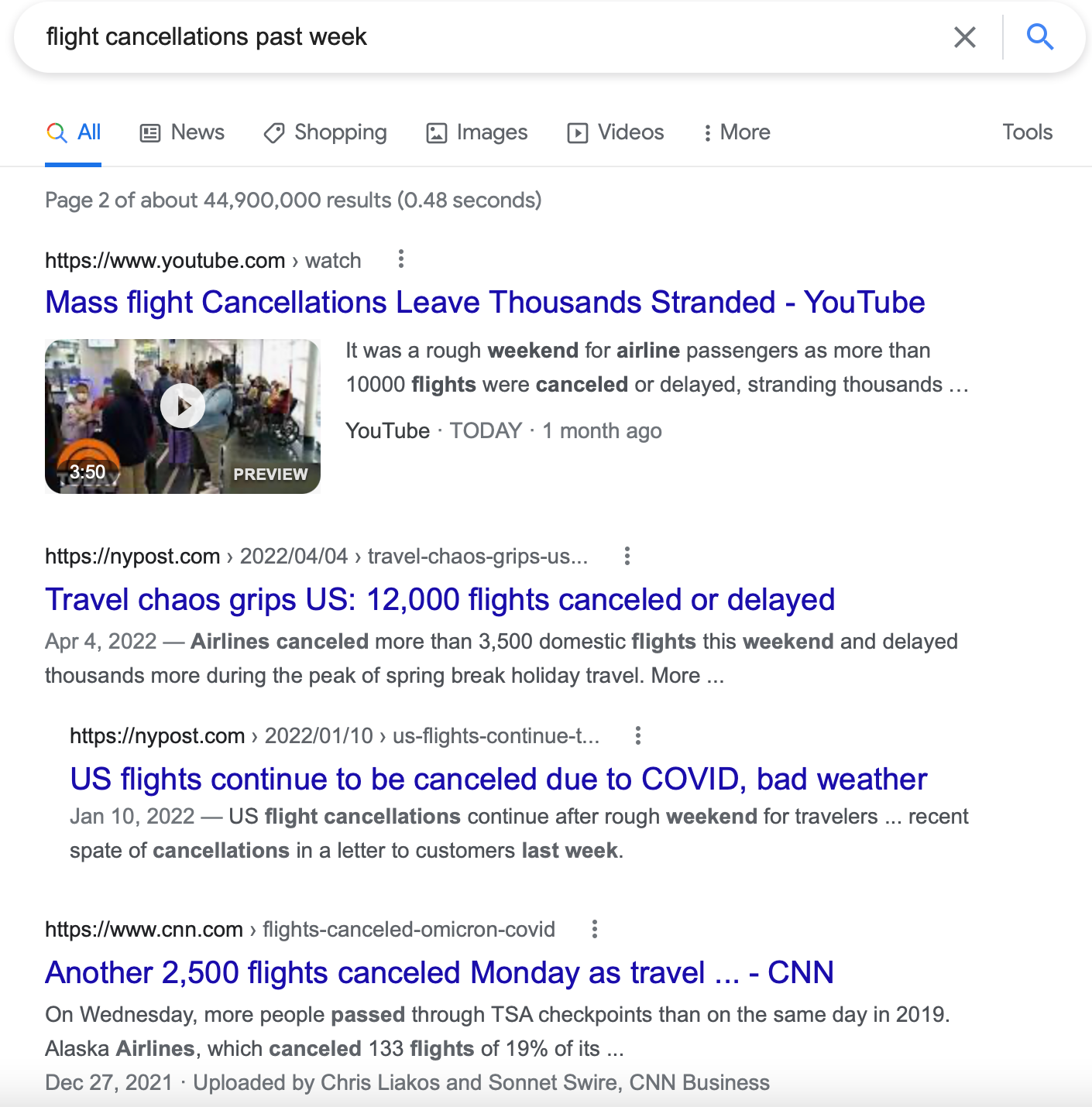 Another easy method to check if flights have been cancelled en masse is to visit Google and check for recent news reports. So I did: