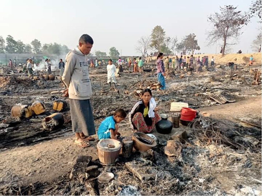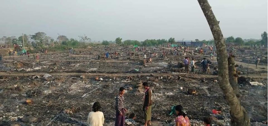 It has been alleged that the military started a blaze (conflagration?) that wiped out an Internally Displaced People (IDP) camp last night. The camp situated in Tein Nyo in northern Rakhine was literally burnt to the ground.
