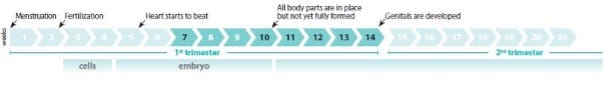 Between 10 and 14 weeks, the fetus gets bigger and the skeletal bones begin to form.