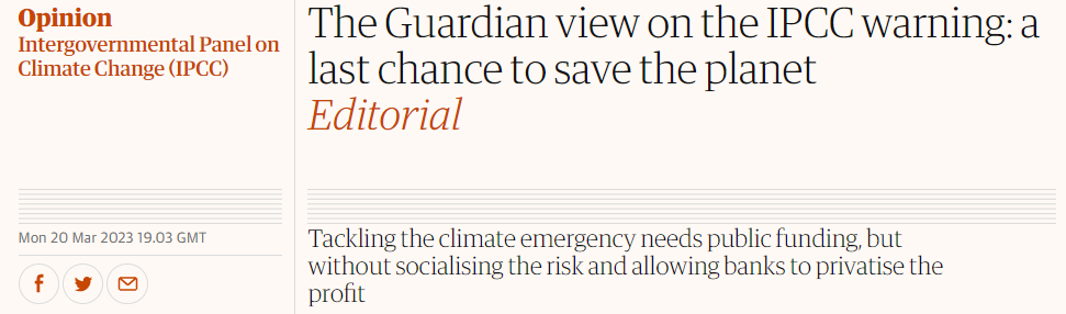 However, when the boffins released the 2023 IPCC report, they decided that 2023 is really the last [last, last, last, last, last, last, last, last, last, last, last, last, last, last, last, last, last] chance to save the planet.