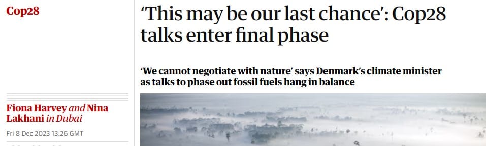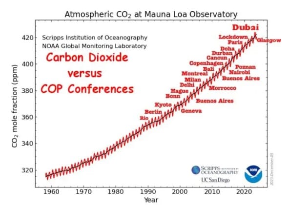 Apparently, no one took the IPCC report seriously enough and the doom mongers had to get in their private jets and fly to Dubai (the home of fossil fuel) for the latest COP, number 28 in a series of doom-porn gabfests. Predictably we got the perennial ‘last chance’ statement. (Keeps me employed writing posts.) This time it is Dan Jørgensen, Denmark’s climate minister who has been quoted in the Guardian headlines.