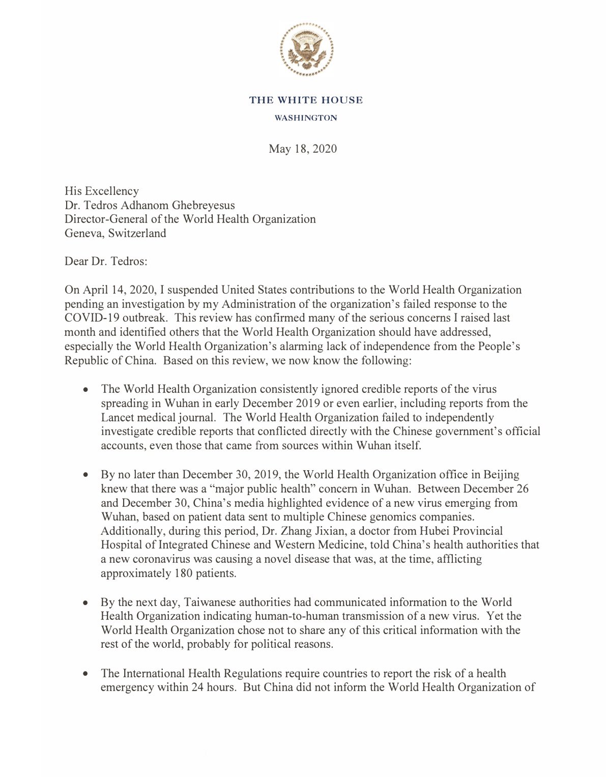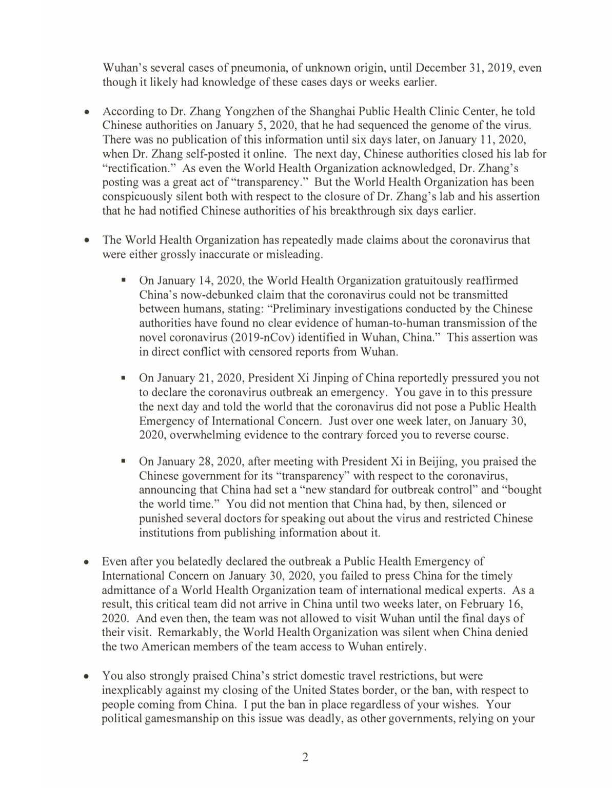 - If WHO does not commit to substantive improvements in the next 30 days Trump will make his temporary freeze of their funding permanent.