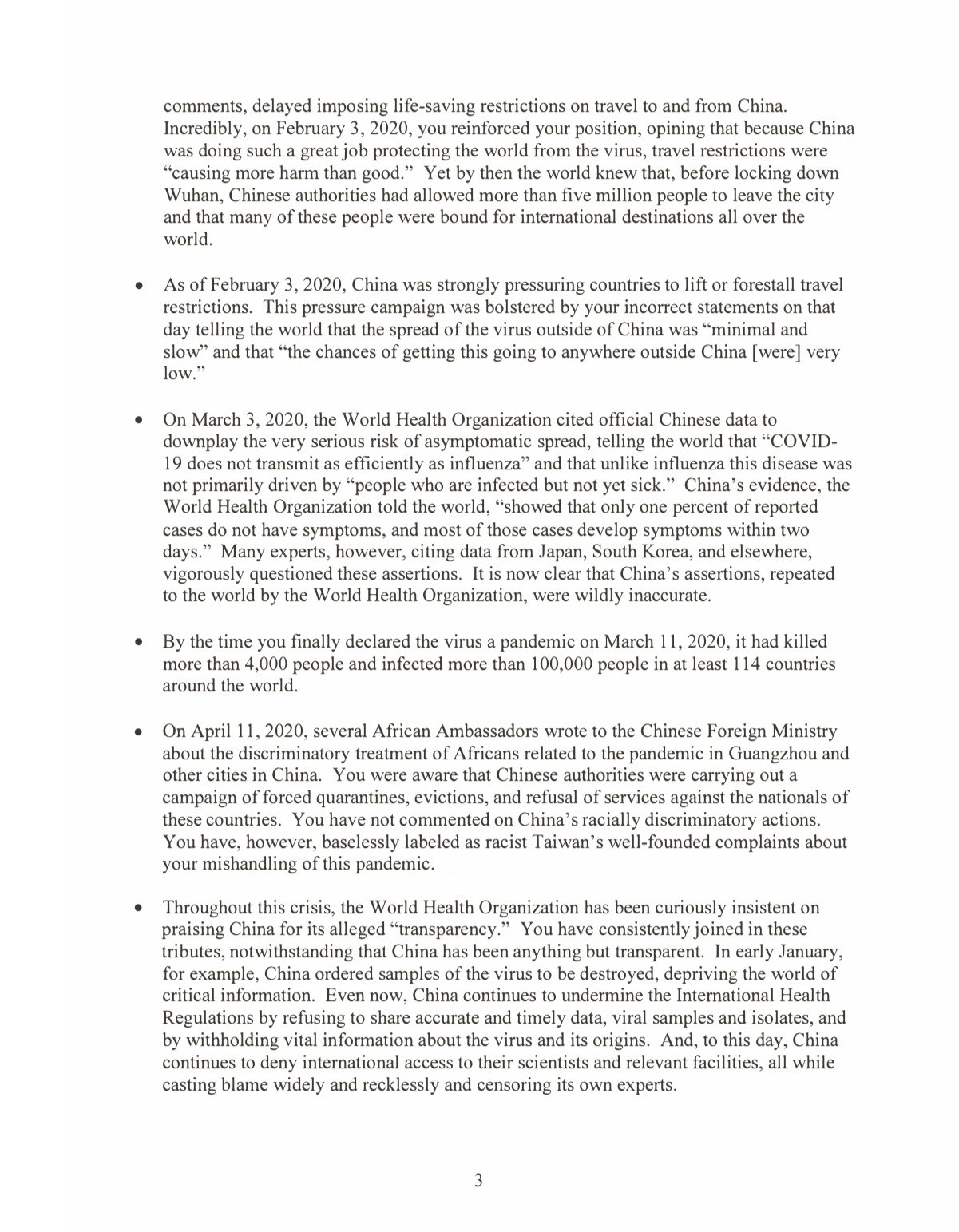 - WHO’s inaccurate statements supported China’s pressure on other countries to lift travel restrictions.