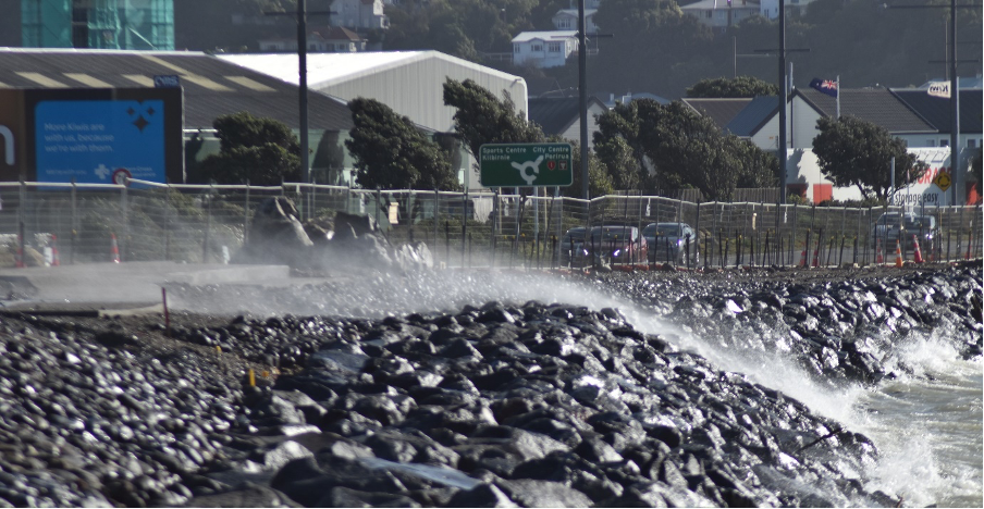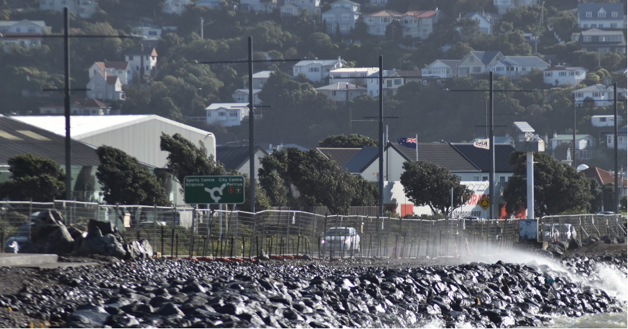 Don’t believe me, as you shouldn’t; what about the evidence of your own lyin’ eyes. Here’s a photo taken by yours truly on Sunday, September 27, 2020, as a scootering exponent (yes, they’re there behind the wind-blown wash) gripping the handlebars in excitement as they cross the newly naked, no-wind-buffer zone, about to enjoy all the wonderful benefits of a total body-and-machine saltwater wash-down courtesy of NZTA and Wellington Council’s glorious ‘planners’.