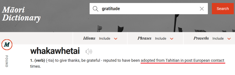 As ‘Maori Language Week’ comes to a close I thought it appropriate to bring you the reo for ‘gratitude’, but such a word does not exist in the tongue. Did you know that?