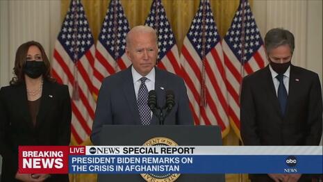 “We saw Joe Biden run yesterday,” Kelly says, cuing the last seconds of Biden’s Monday speech on Afghanistan followed by his turning on his heel and slowly walking out of the East Room as reporters finally get around to bellowing questions.