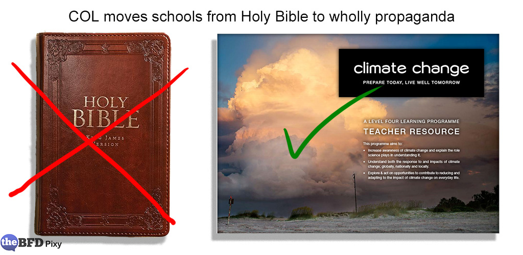[…] Join the dots. Out goes religious instruction and in comes its secular substitute in the form of politically charged dogma surrounding climate change. The two announcements neatly complemented each other, serving as a kind of metaphor for wider political and social changes driven by the “progressive” Left.