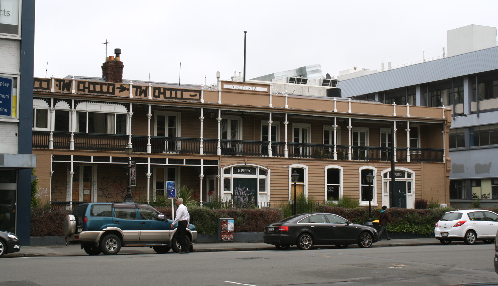 I will always be grateful to my ex-workmates of Bryco-ProPrint (now out of business) who introduced me to the old ‘Occi’ around 1999/2000. I was invited along to watch the All Blacks on the big screen and have a sampling of the backpacker’s famous roast dinner. I know I looked up at the façade as we walked in off Hereford Street and instantly I knew I had never seen a Christchurch building quite like it before. It looked like it had dropped right out of a western movie. By that time in its history, serving the city as a backpackers, it came across as a place not for the faint-hearted – a very interesting turn for a hotel that once boasted to be “…inferior to none in the Province…”.