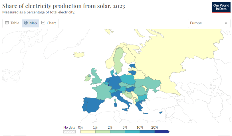 All over Europe, the countries with the most solar and wind power have the highest prices