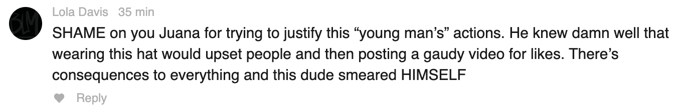 SHAME on you Juana for trying to justify this “young woman’s” actions. She knew damn well that wearing a hijab would upset people and then posting a gaudy video for likes. There’s consequences to everything and this woman smeared HERSELF