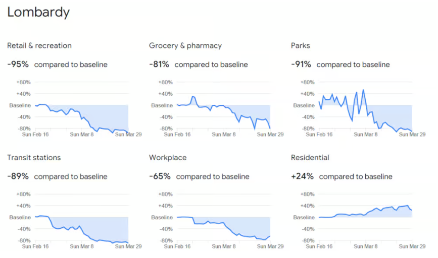Google mobility data from Lombardy also show that there was no change in behaviour during the pre-lockdown period. While there was a drop in movement following the initial quarantine zone being imposed around a few towns on February 21st, there was no subsequent change that could explain why the outbreak slowed down in the week coming up to lockdown.