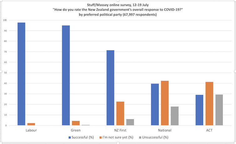 - most likely to rate the New Zealand government’s overall response to COVID-19 as “unsuccessful”: 29.5% compared with 9.9% for the whole sample