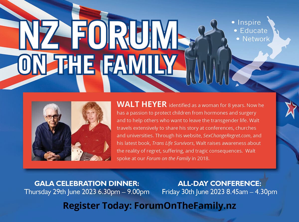 Not to be missed!… Walt Heyer will be one of the keynote speakers at our upcoming NZ Forum on the Family 2023 (Friday June 30th at Vodafone Events Centre, Manukau).