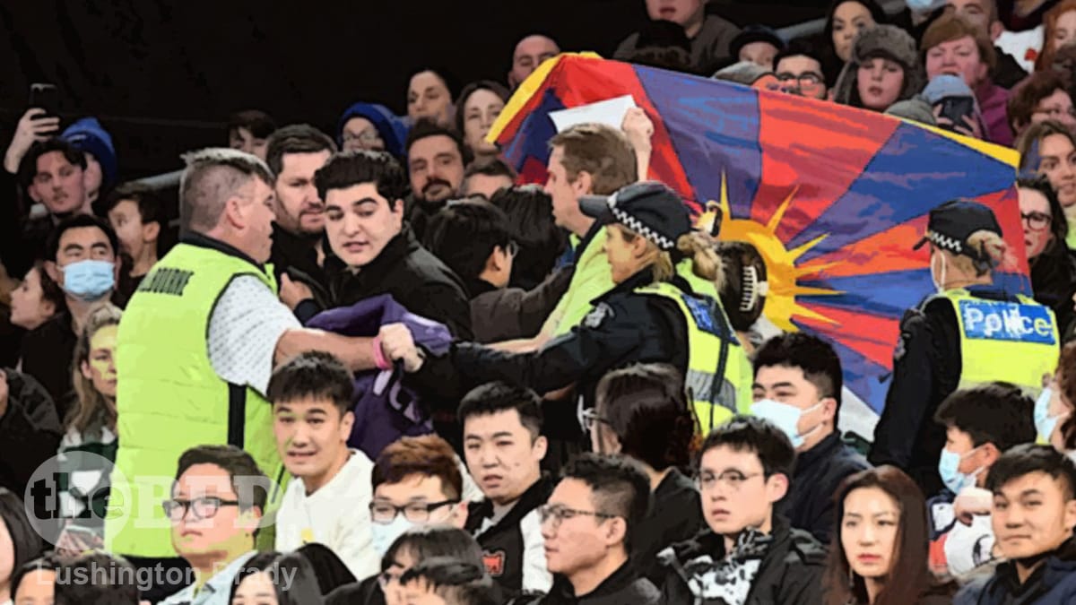 China doesn’t even have to send in its own goons: security at Australian-owned stadia are more than happy to do Beijing’s dirty work. Stadium-owning corporations shamelessly kowtow to the CCP by banning signs and T-shirts supporting disappeared tennis champion Peng Shuai. Peng vanished after she publicly accused Zhang Gaoli, a retired Chinese vice-premier and high-ranking CCP member, of sexual assault.