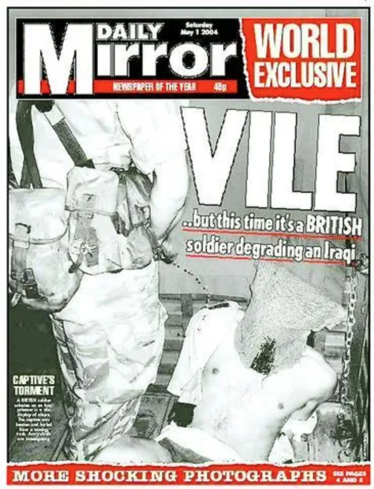 A self-made moral arbiter though he may think, shameless enough to now pass judgement and chastise those who put fantasy over fact, once again, let us not forget Morgan’s personal participation in the realm of ‘hoax’ himself — pre-Sandy Hook — when, as editor of the Daily Mirror, before finding any legitimate corroboration, he green-lit the front-page publishing of multiple fake ‘torture’ photos which purported to show British Army officers defiling ‘Iraqi prisoners’ whilst in captivity abroad.