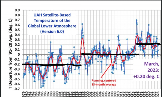 Now that the left is waking up to the fact this is a strong El Niño, they are jumping on the rise coming. which anyone with common sense should then say, well if El Niños are natural and you can plainly see the step-up function with the strong event, how is the bulk of the warming, not natural?