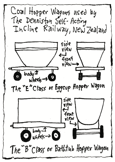 The wagons going down reached speeds of 70km/hr. Before there was a road up the ridge, everything going up to the town of Denniston (pop. 2,000) at the top, went up in the empty wagons. Including some of the people. Who of course went down in the wagons too. There were accidents. After a wagon jumped the tracks and killed four people in 1884, they built a path up the ridge, later a road. (They also transported dead bodies down in the empty wagons for burial elsewhere as the ground at Denniston was too hard to dig for graves.)