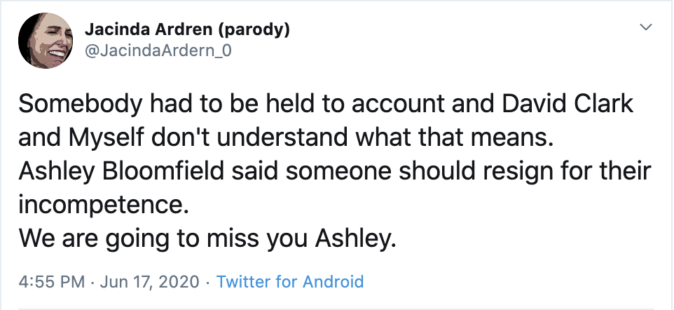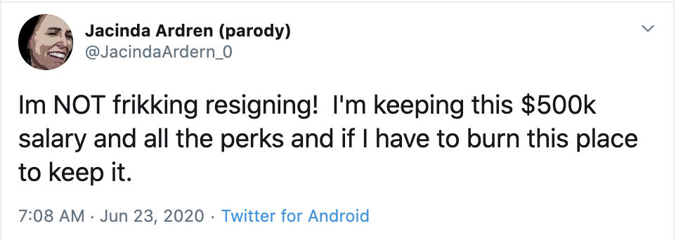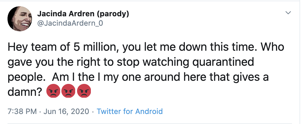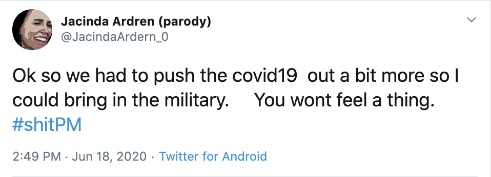 — Jacinda Ardren (parody) (@JacindaArdern_0) June 18, 2020