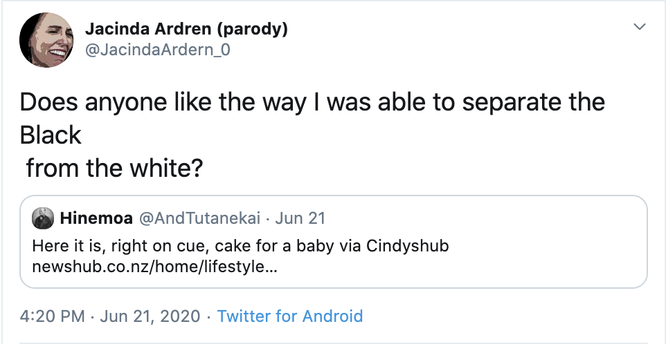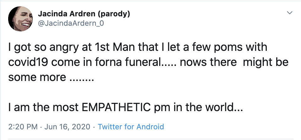 — Jacinda Ardren (parody) (@JacindaArdern_0) June 20, 2020