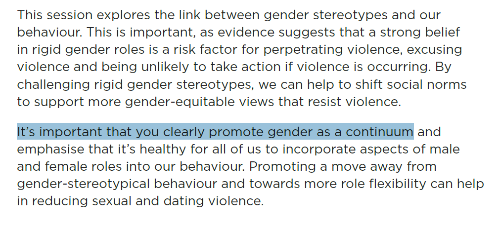 The programme’s approach to achieving the goal of reducing violence, however, is to blur the lines between what it means to be male or female.