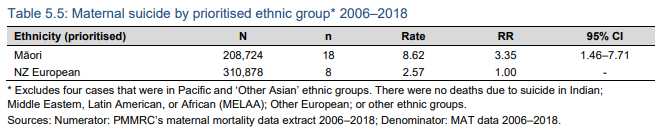 The report is from the Helen Clark Foundation and while the assertion is made and referred to several times in the paper, no statistics are provided. The claim is referenced though and takes us to this source – the maternal section of Perinatal Mortality Review report.
