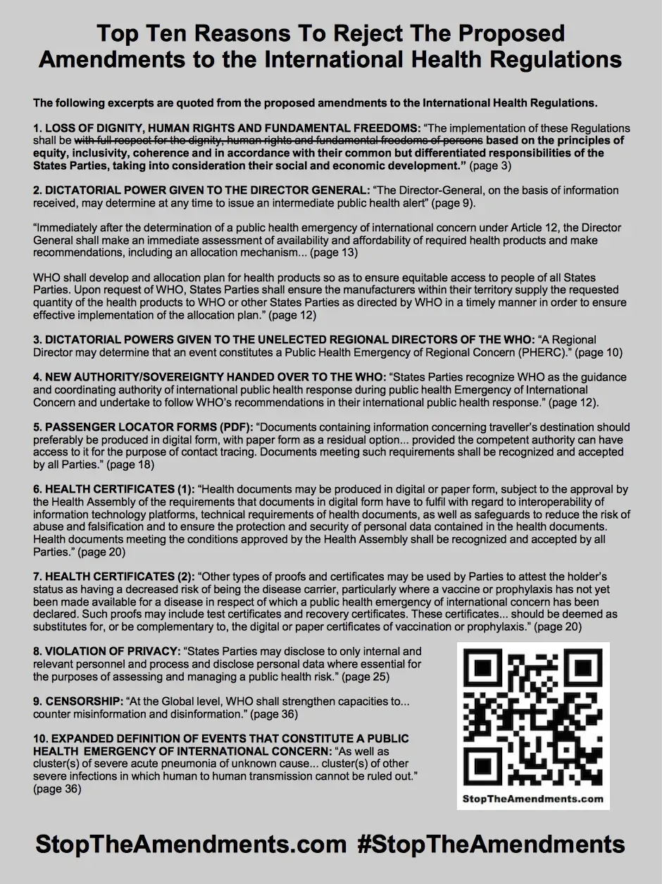 “The super-secret International Health Regulations Review Committee (IHRRC) is scheduled to meet January 9-13, 2023. They plan to submit the amendments on January 15, 2023. THIS IS REALLY IMPORTANT.“
