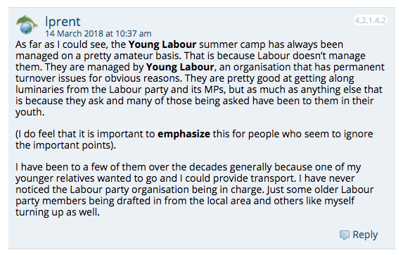 It doesn’t ring true that Young Labour were running this camp when Andrew Kirton was there and authorised the Young Labour photo, when Tamati Coffey was there, when Liz Craig was there. On top of that, the organiser is in her twenties and also, my sources say, there were two staffers from parliament there as well. Is Jacinda Ardern really saying Young Labour ran the event when the General Secretary is clearly in attendance? Is she really going to run that line The facts don’t match up with her claims.